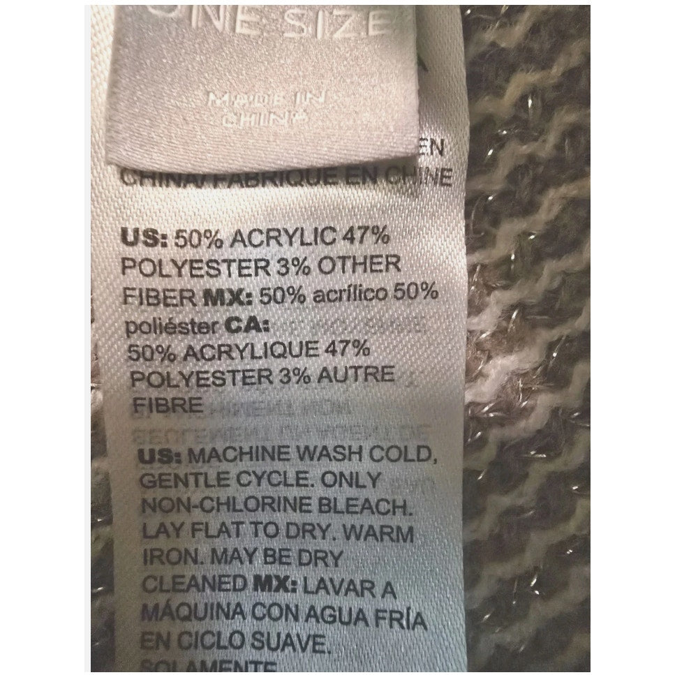 Chicos Women's Poncho One Size Cowl Neck Knit Stripe Fringe Cozy Tan White Gold