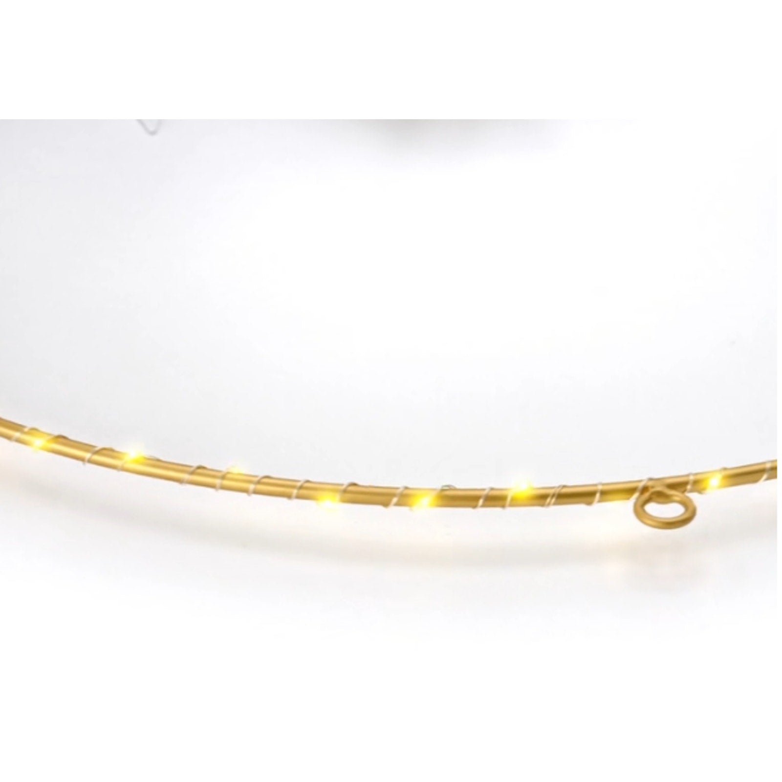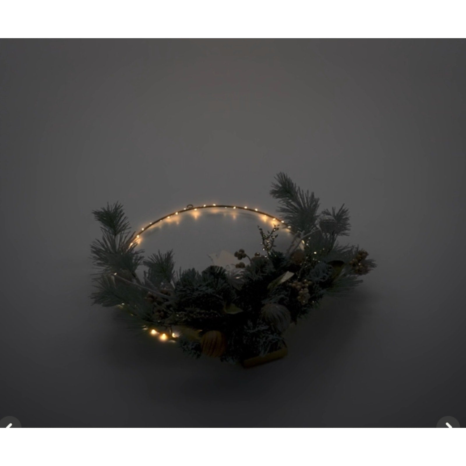 The wreath is pre-lit with 50 warm white LED micro lights on champagne cording, powered by a battery pack for a clean, cord-free look. The included timer allows you to set the lights for 6 hours ON and 18 hours OFF, ensuring effortless operation throughout the holiday season. Three AA batteries are included for immediate use.